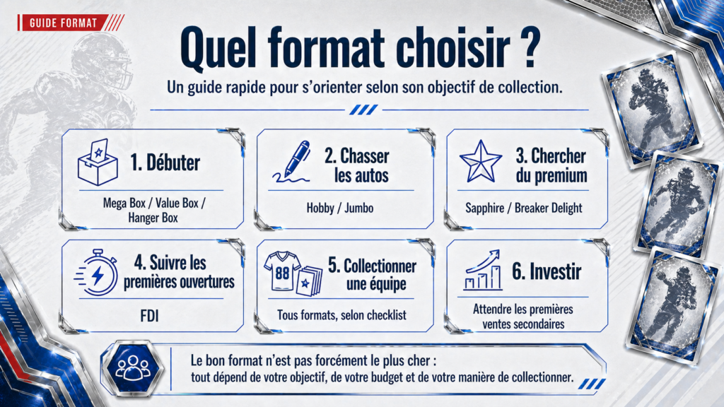 Les formats Hobby, Jumbo, Sapphire ou Breaker Delight seront probablement plus intéressants pour ceux qui cherchent les autographes, les parallèles rares ou les cartes plus premium. Ce sont aussi les produits les plus exposés à la spéculation.