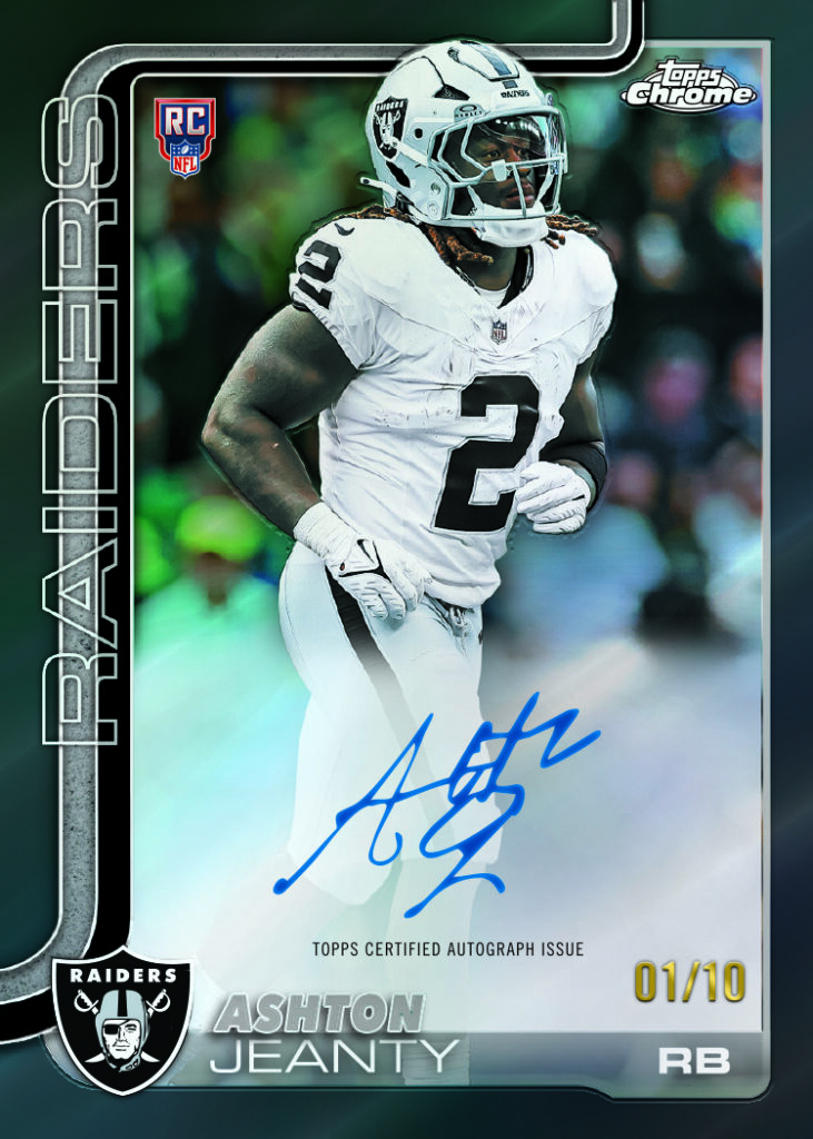La checklist mélange rookies, stars actuelles et légendes. C’est important, car Topps ne vise pas uniquement les collectionneurs qui suivent la draft ou les jeunes quarterbacks. La marque cherche à parler à plusieurs profils : ceux qui chassent les rookies, ceux qui collectionnent leur équipe favorite, ceux qui recherchent les autographes de légendes et ceux qui veulent simplement entrer dans l’univers NFL avec un produit Chrome premium.